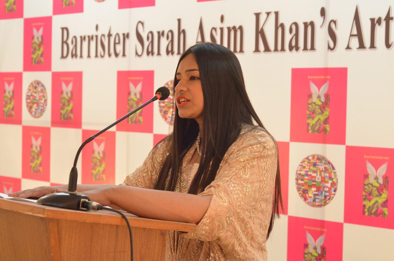 Barrister Sarah is the pioneer of Cultural Diplomacy and International Mythological Art in Pakistan. Her exhibition displayed paintings pertaining to 23 countries and abstract wild animals. The exhibition highlighted wildlife conservation and the message of peace to promote friendship and trade between Pakistan and the world.